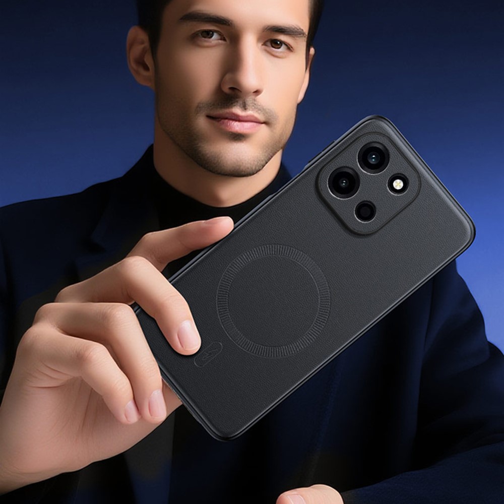 Made of durable TPU and PC with PU leather exterior, combining strength, flexibility, and a luxury feel.Built-in N52 magnetic ring, fully compatible with magnetic chargers, magnetic power banks, and car magnetic holders.Imported PU leather offers a refined texture that is anti-fingerprint, anti-slip, and comfortable to hold.Combines durability with a slim, lightweight profile, maintaining a modern and elegant appearance while ensuring comfort and practicality in everyday use