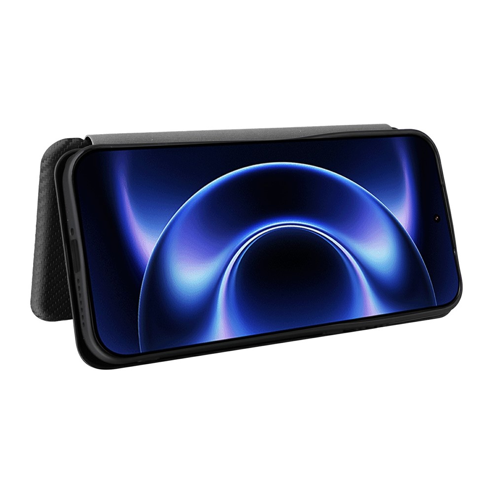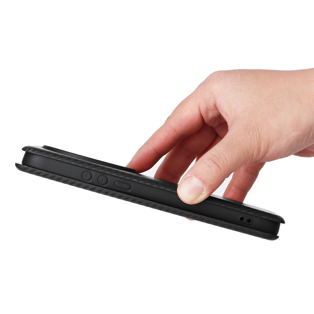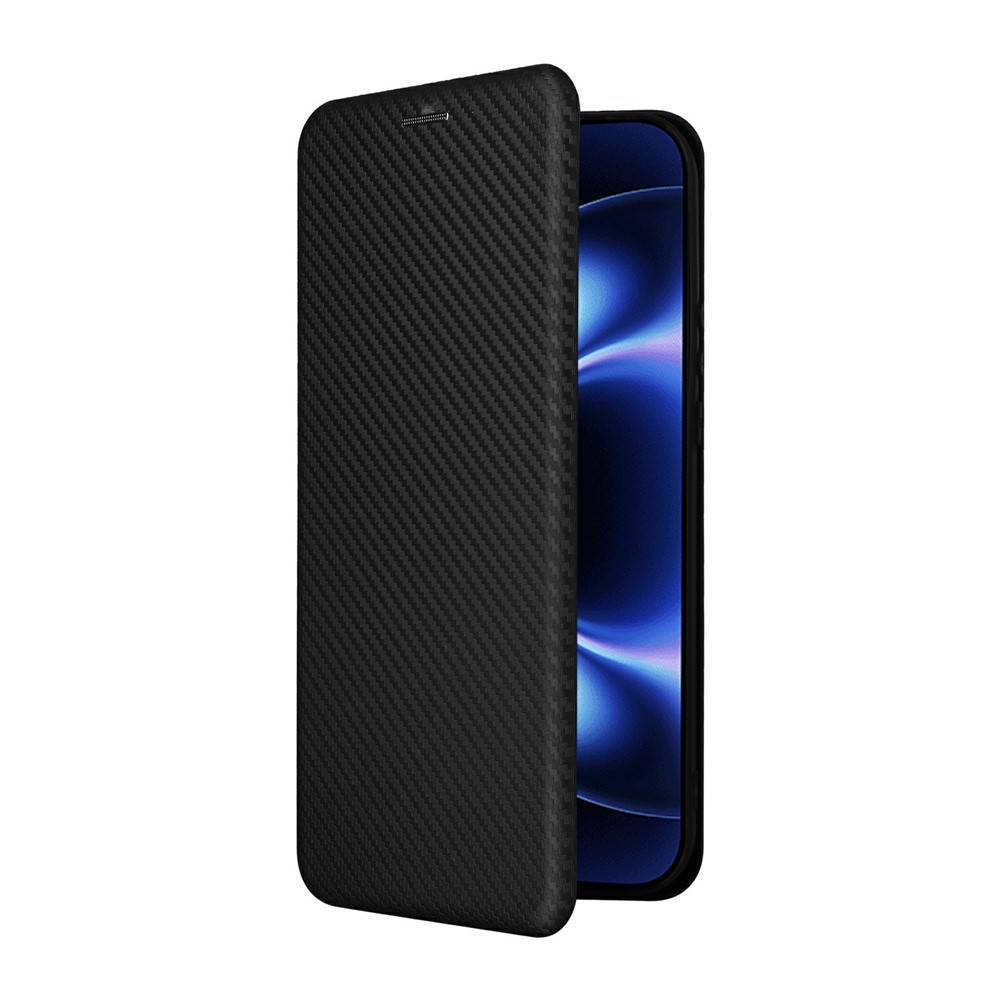 Elegant carbon fibre: features a carbon fibre texture that is fingerprint-resistant and offers an excellent feel for a sophisticated look.Constructed with PU leather and a soft TPU interior, this case offers robust protection against everyday wear and tear.Convenient card slot: includes an integrated card slot to keep your essential card close at hand, making payment on the move effortless.The self-absorbing magnetic closure system ensures that your phone is securely closed, offering extra peace of mind.Versatile stand function: easily converts into a stand, allowing you to watch TV or surf the Internet hands-free with a practical support strap.Full body protection: offers complete protection against scratches, dust and other everyday damage, keeping your phone in perfect condition.Answer calls with ease: designed with a front cutout , allowing you to answer phone calls without opening the case.