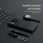 Continues the simplicity of Qin Leather Case and integrates modern fashion, which is much suitable for all kinds of leisure or business occasions. It is made of selected high-quality leather that retains the unique texture of leather in the process and smooth touching. The classic flip design provides 360 ° protection to your phone. The bottom shell by splicing TPU and PC and airbags inside on four corners are built to provide proper protection for phone; Nillkin Patented lens sliding cover not only prevents lens from scratching, but protects your phone’s privacy from disclosure; Delicate and soft lining features cushioning, scratch resistance leather and careful care to Samsung Galaxy S23 Ultra; Equipping with double card slots makes your travel easily.